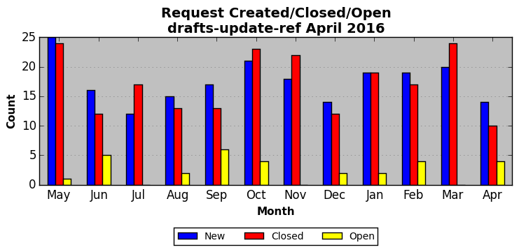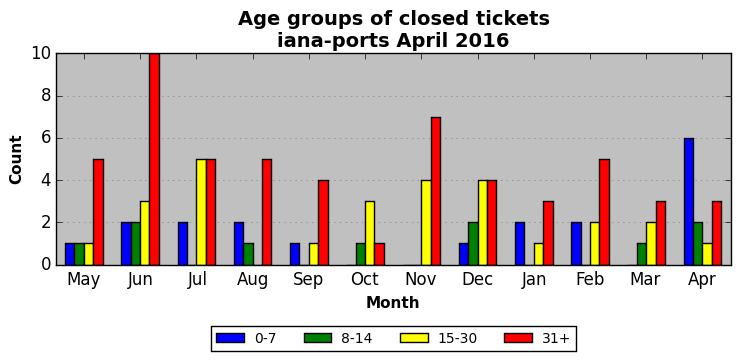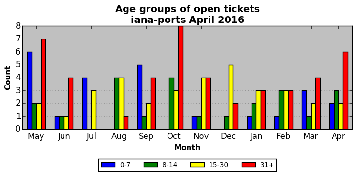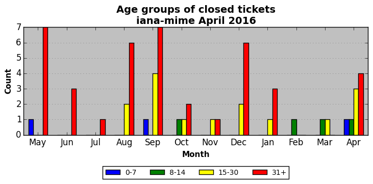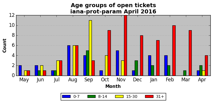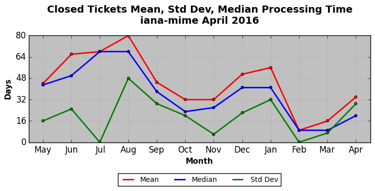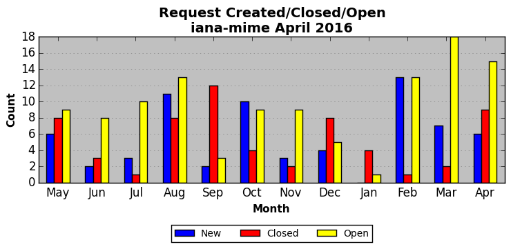 The statistics below are offered to measure IANA's fulfillment of the goals established in the ICANN / IANA - IETF MoU Supplemental Agreement. Further details on these goals and statistics can be found by reviewing the agreement.