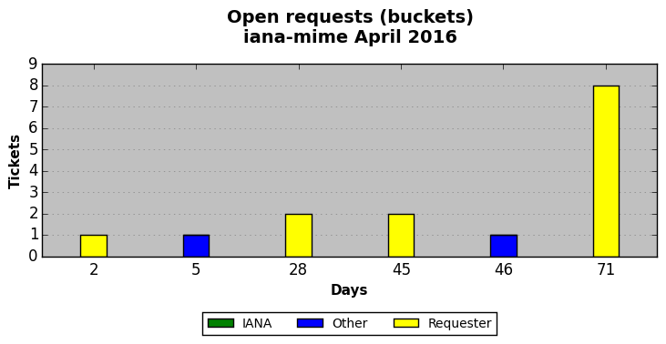 April 2016Due to the nature of resource request reviews, ICANN/IANA and the IETF community are jointly responsible for cooperatively managing the resource request process. ICANN/IANA has control over the functions it performs directly, e.g., receiving requests, making sure they are syntactically and semantically sensible, forwarding the requests to Designated Experts where appropriate, creating and modifying the registries, etc. The IETF community has direct or indirect control over functions performed by third parties, including IESG Designated Experts, the IESG, the IAB, the RFC Editor, and the requester. As such, the processing of requests has a “gross processing time” calendar days goal established for each function and a “net processing time” calendar days goal to reflect time expended directly by ICANN/IANA.