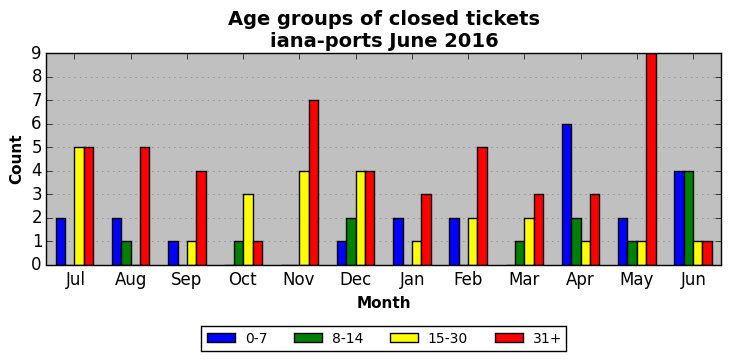 The statistics below are offered to measure IANA's fulfillment of the goals established in the ICANN / IANA - IETF MoU Supplemental Agreement. Further details on these goals and statistics can be found by reviewing the agreement.