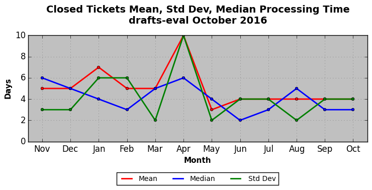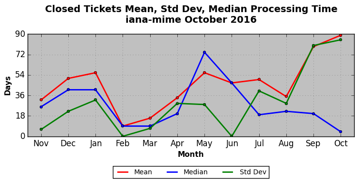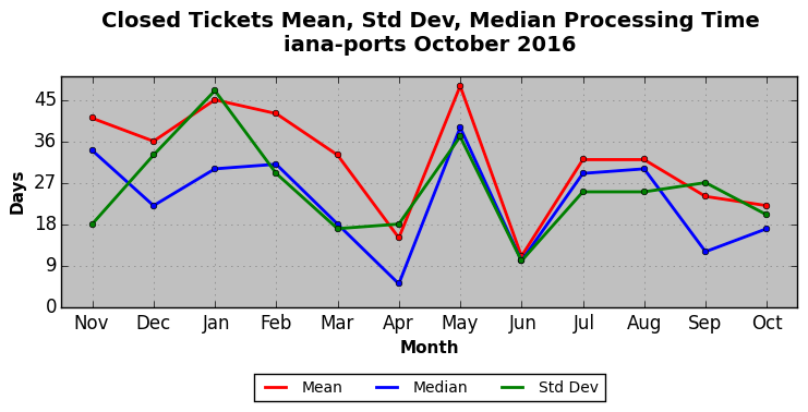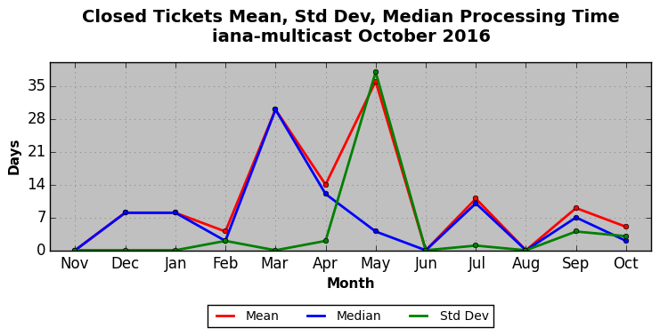 The statistics below are offered to measure IANA's fulfillment of the goals established in the ICANN / IANA - IETF MoU Supplemental Agreement. Further details on these goals and statistics can be found by reviewing the agreement.