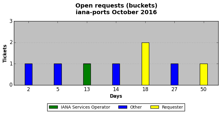 October 2016Due to the nature of resource request reviews, ICANN/IANA and the IETF community are jointly responsible for cooperatively managing the resource request process. ICANN/IANA has control over the functions it performs directly, e.g., receiving requests, making sure they are syntactically and semantically sensible, forwarding the requests to Designated Experts where appropriate, creating and modifying the registries, etc. The IETF community has direct or indirect control over functions performed by third parties, including IESG Designated Experts, the IESG, the IAB, the RFC Editor, and the requester. As such, the processing of requests has a “gross processing time” calendar days goal established for each function and a “net processing time” calendar days goal to reflect time expended directly by ICANN/IANA.