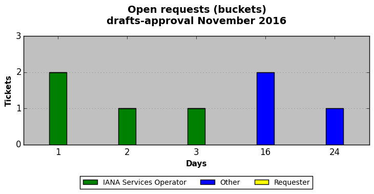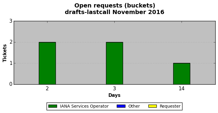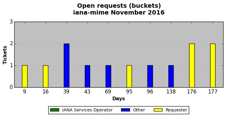 November 2016Due to the nature of resource request reviews, ICANN/IANA and the IETF community are jointly responsible for cooperatively managing the resource request process. ICANN/IANA has control over the functions it performs directly, e.g., receiving requests, making sure they are syntactically and semantically sensible, forwarding the requests to Designated Experts where appropriate, creating and modifying the registries, etc. The IETF community has direct or indirect control over functions performed by third parties, including IESG Designated Experts, the IESG, the IAB, the RFC Editor, and the requester. As such, the processing of requests has a “gross processing time” calendar days goal established for each function and a “net processing time” calendar days goal to reflect time expended directly by ICANN/IANA.