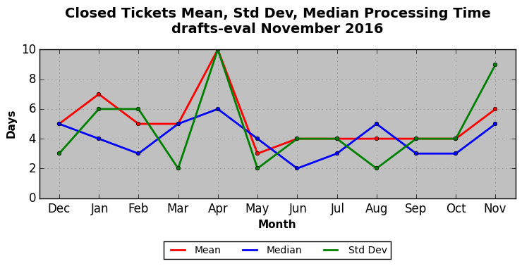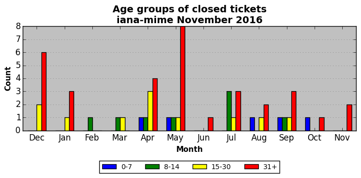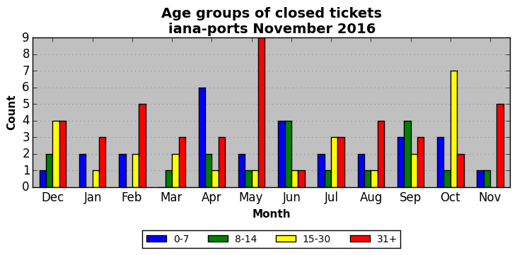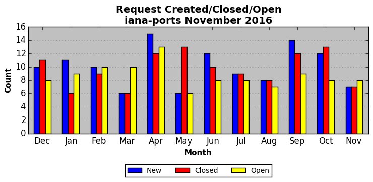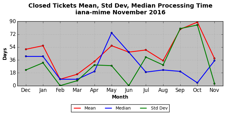 The statistics below are offered to measure IANA's fulfillment of the goals established in the ICANN / IANA - IETF MoU Supplemental Agreement. Further details on these goals and statistics can be found by reviewing the agreement.