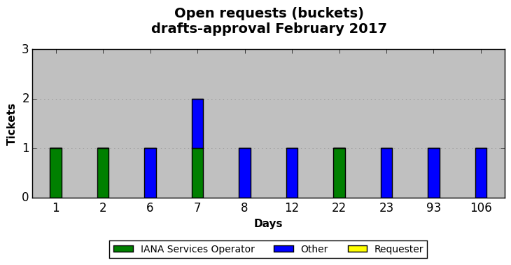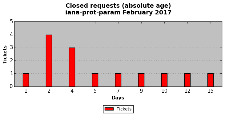 February 2017Due to the nature of resource request reviews, ICANN/IANA and the IETF community are jointly responsible for cooperatively managing the resource request process. ICANN/IANA has control over the functions it performs directly, e.g., receiving requests, making sure they are syntactically and semantically sensible, forwarding the requests to Designated Experts where appropriate, creating and modifying the registries, etc. The IETF community has direct or indirect control over functions performed by third parties, including IESG Designated Experts, the IESG, the IAB, the RFC Editor, and the requester. As such, the processing of requests has a “gross processing time” calendar days goal established for each function and a “net processing time” calendar days goal to reflect time expended directly by ICANN/IANA.