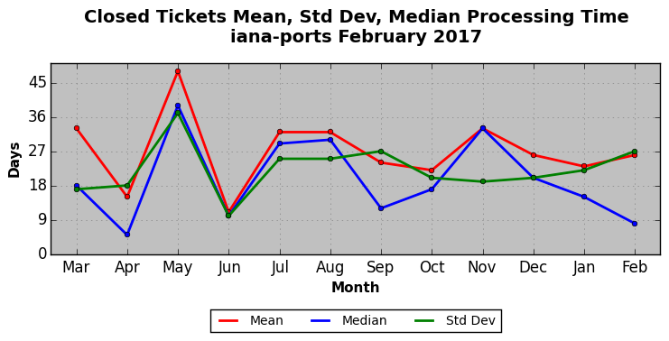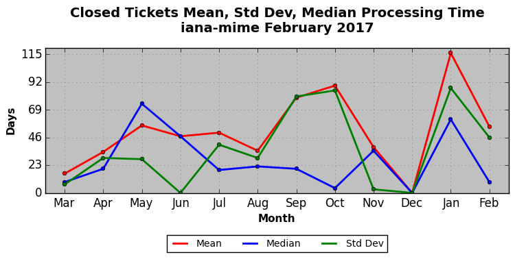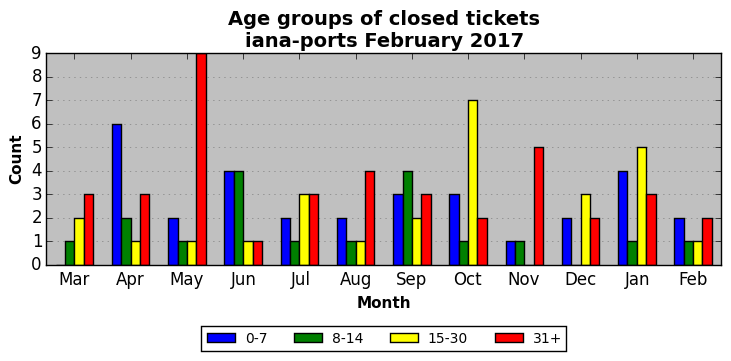 The statistics below are offered to measure IANA's fulfillment of the goals established in the ICANN / IANA - IETF MoU Supplemental Agreement. Further details on these goals and statistics can be found by reviewing the agreement.