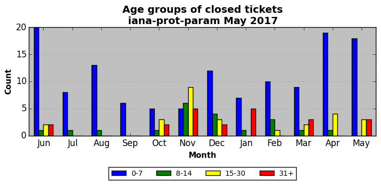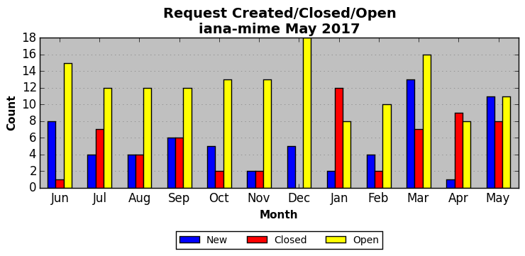 The statistics below are offered to measure IANA's fulfillment of the goals established in the ICANN / IANA - IETF MoU Supplemental Agreement. Further details on these goals and statistics can be found by reviewing the agreement.