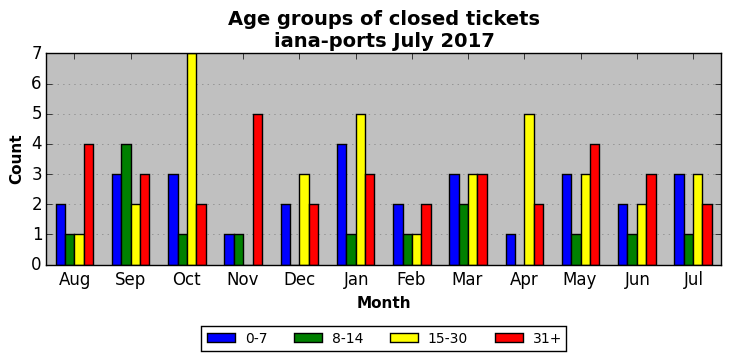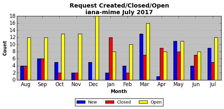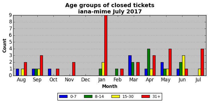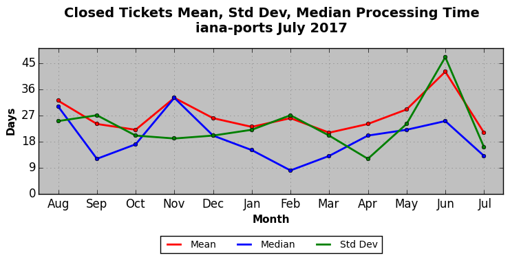 The statistics below are offered to measure IANA's fulfillment of the goals established in the ICANN / IANA - IETF MoU Supplemental Agreement. Further details on these goals and statistics can be found by reviewing the agreement.