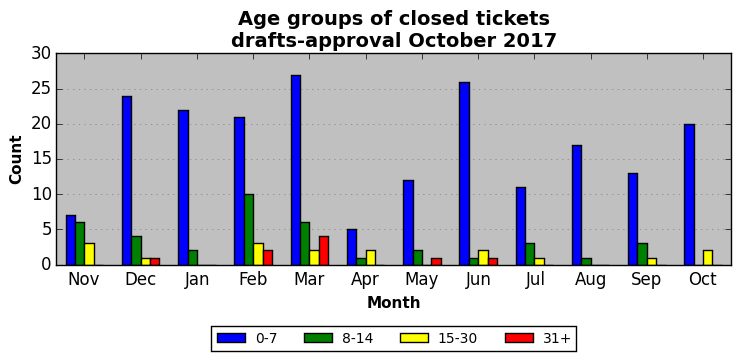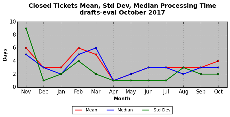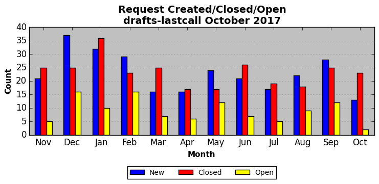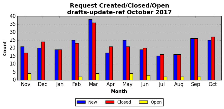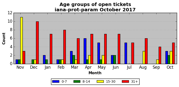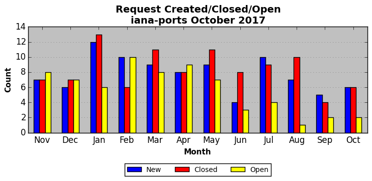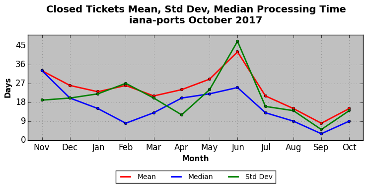 The statistics below are offered to measure IANA's fulfillment of the goals established in the ICANN / IANA - IETF MoU Supplemental Agreement. Further details on these goals and statistics can be found by reviewing the agreement.