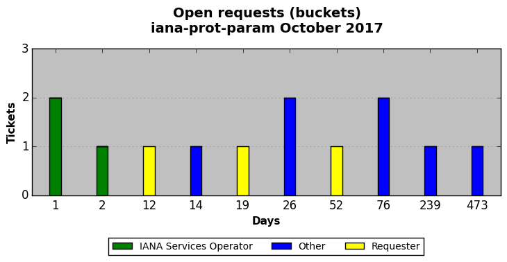 October 2017Due to the nature of resource request reviews, ICANN/IANA and the IETF community are jointly responsible for cooperatively managing the resource request process. ICANN/IANA has control over the functions it performs directly, e.g., receiving requests, making sure they are syntactically and semantically sensible, forwarding the requests to Designated Experts where appropriate, creating and modifying the registries, etc. The IETF community has direct or indirect control over functions performed by third parties, including IESG Designated Experts, the IESG, the IAB, the RFC Editor, and the requester. As such, the processing of requests has a “gross processing time” calendar days goal established for each function and a “net processing time” calendar days goal to reflect time expended directly by ICANN/IANA.
