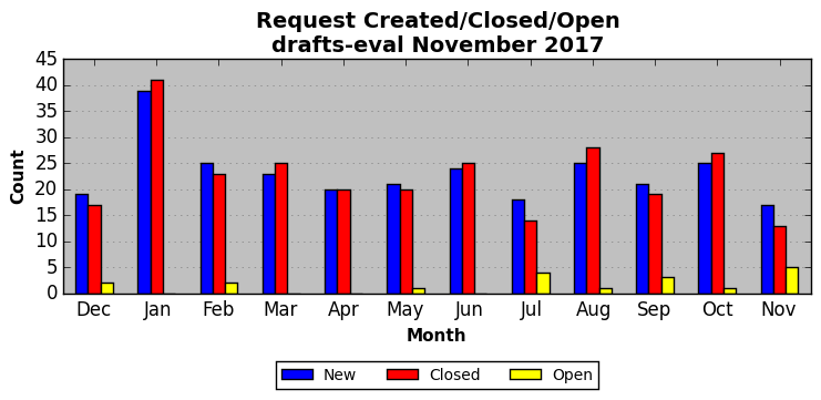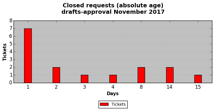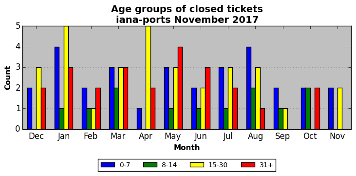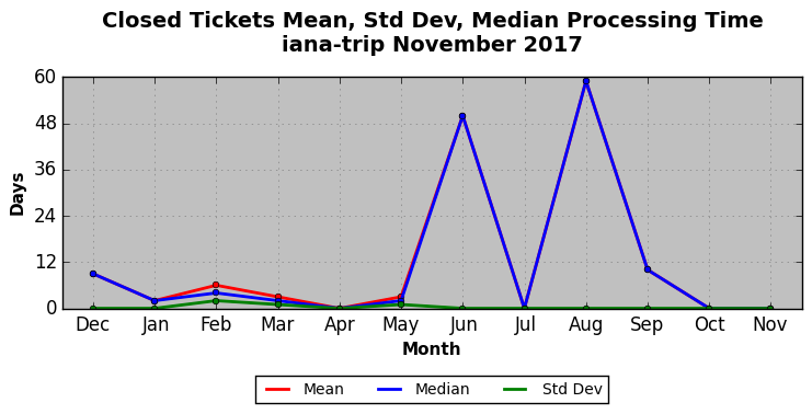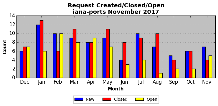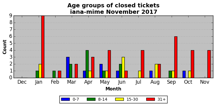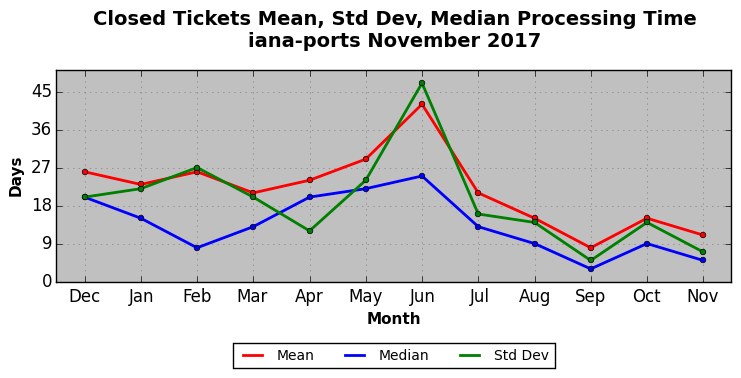 The statistics below are offered to measure IANA's fulfillment of the goals established in the ICANN / IANA - IETF MoU Supplemental Agreement. Further details on these goals and statistics can be found by reviewing the agreement.