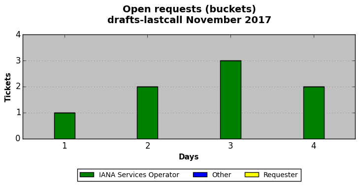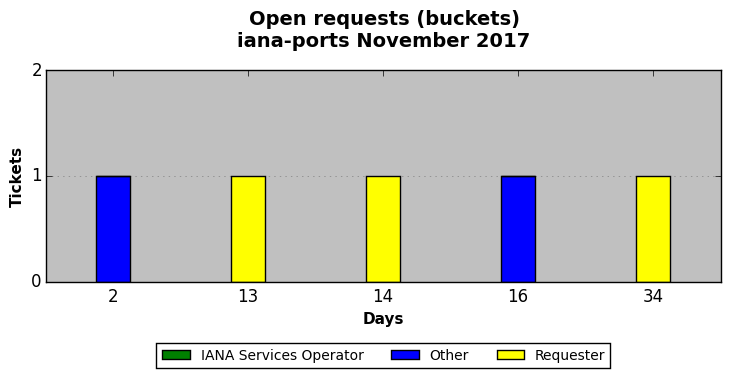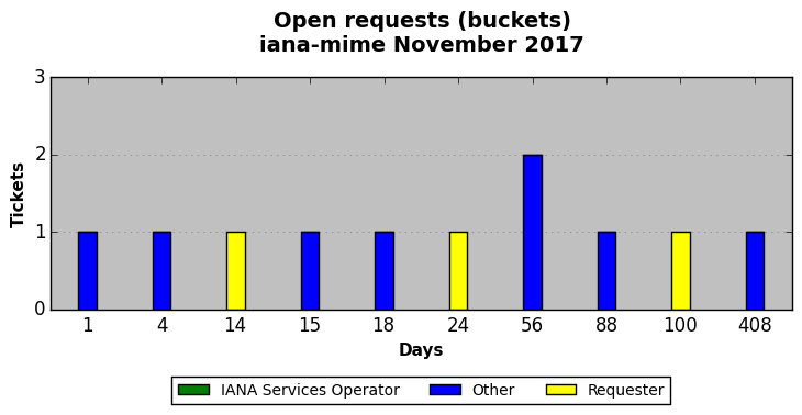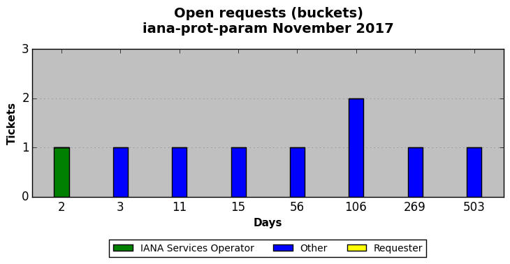 November 2017Due to the nature of resource request reviews, ICANN/IANA and the IETF community are jointly responsible for cooperatively managing the resource request process. ICANN/IANA has control over the functions it performs directly, e.g., receiving requests, making sure they are syntactically and semantically sensible, forwarding the requests to Designated Experts where appropriate, creating and modifying the registries, etc. The IETF community has direct or indirect control over functions performed by third parties, including IESG Designated Experts, the IESG, the IAB, the RFC Editor, and the requester. As such, the processing of requests has a “gross processing time” calendar days goal established for each function and a “net processing time” calendar days goal to reflect time expended directly by ICANN/IANA.