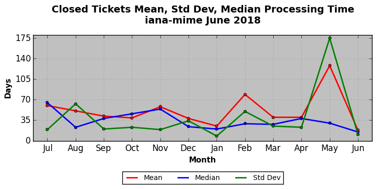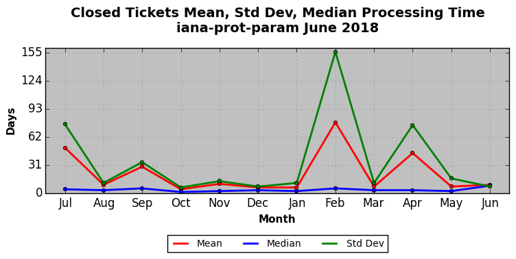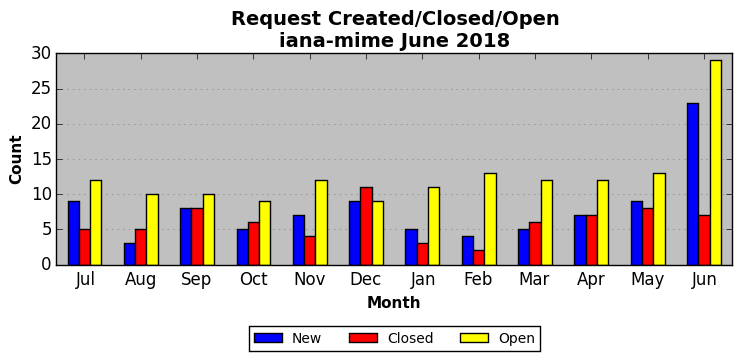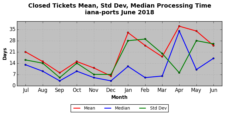 The statistics below are offered to measure IANA's fulfillment of the goals established in the ICANN / IANA - IETF MoU Supplemental Agreement. Further details on these goals and statistics can be found by reviewing the agreement.