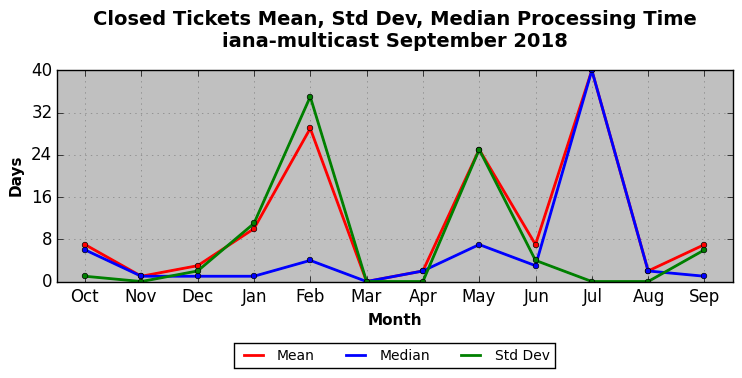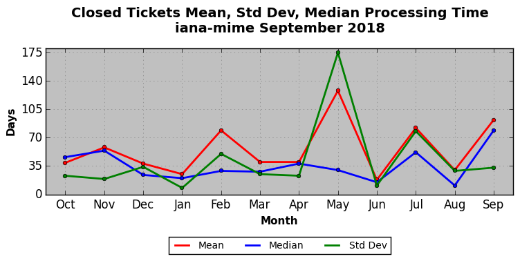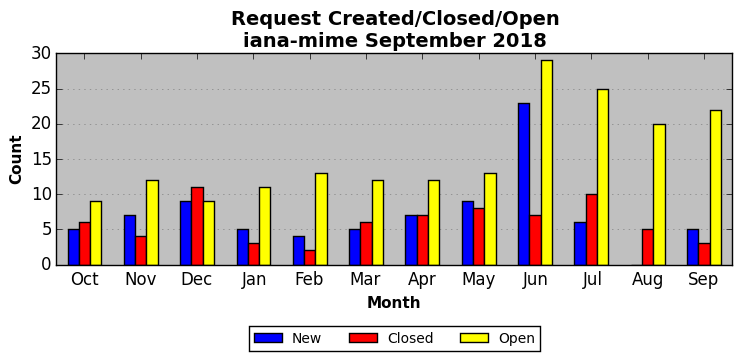 The statistics below are offered to measure IANA's fulfillment of the goals established in the ICANN / IANA - IETF MoU Supplemental Agreement. Further details on these goals and statistics can be found by reviewing the agreement.