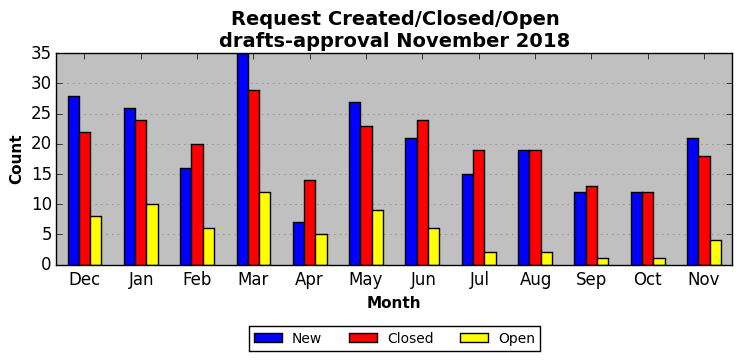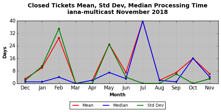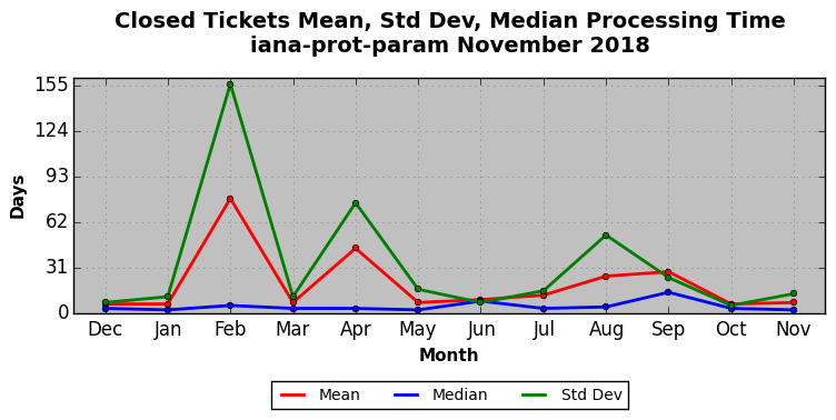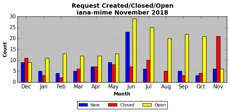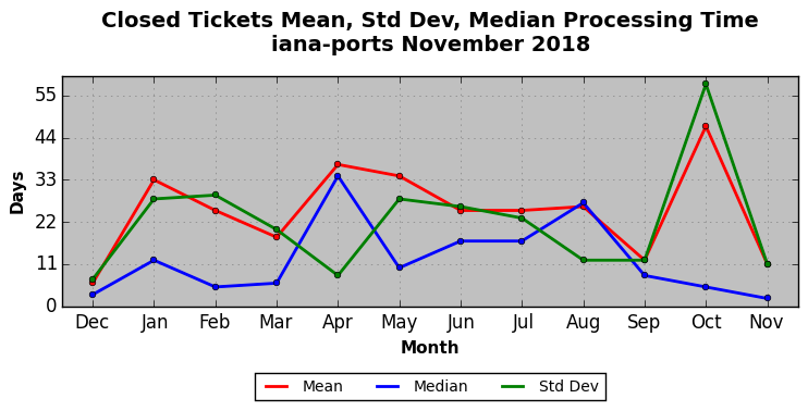 The statistics below are offered to measure IANA's fulfillment of the goals established in the ICANN / IANA - IETF MoU Supplemental Agreement. Further details on these goals and statistics can be found by reviewing the agreement.