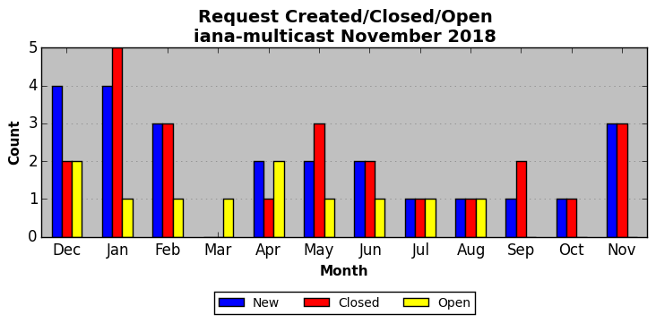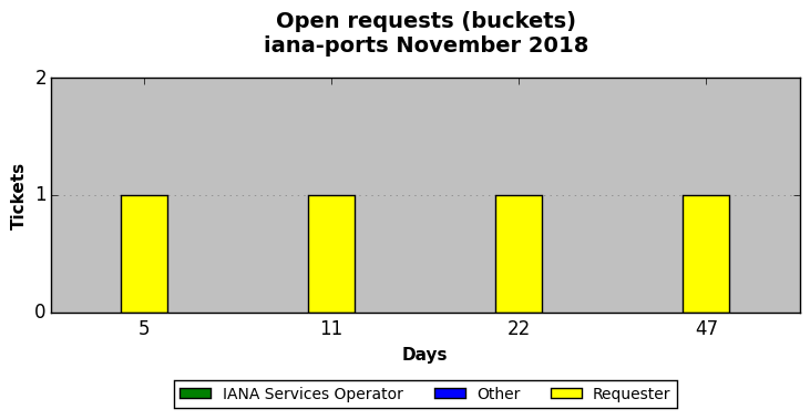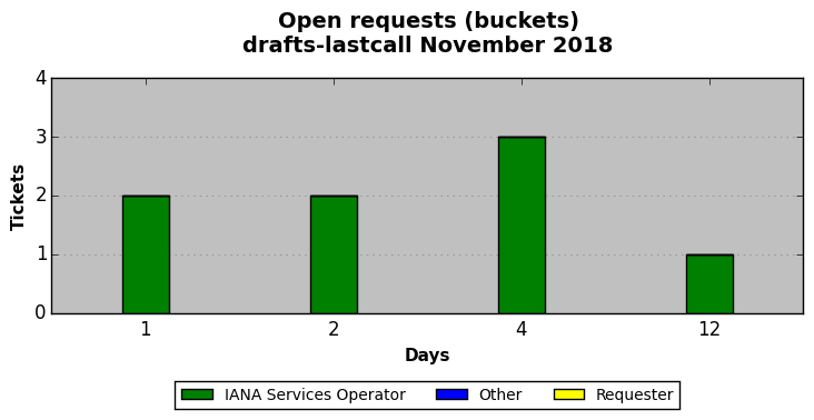 November 2018Due to the nature of resource request reviews, ICANN/IANA and the IETF community are jointly responsible for cooperatively managing the resource request process. ICANN/IANA has control over the functions it performs directly, e.g., receiving requests, making sure they are syntactically and semantically sensible, forwarding the requests to Designated Experts where appropriate, creating and modifying the registries, etc. The IETF community has direct or indirect control over functions performed by third parties, including IESG Designated Experts, the IESG, the IAB, the RFC Editor, and the requester. As such, the processing of requests has a “gross processing time” calendar days goal established for each function and a “net processing time” calendar days goal to reflect time expended directly by ICANN/IANA.