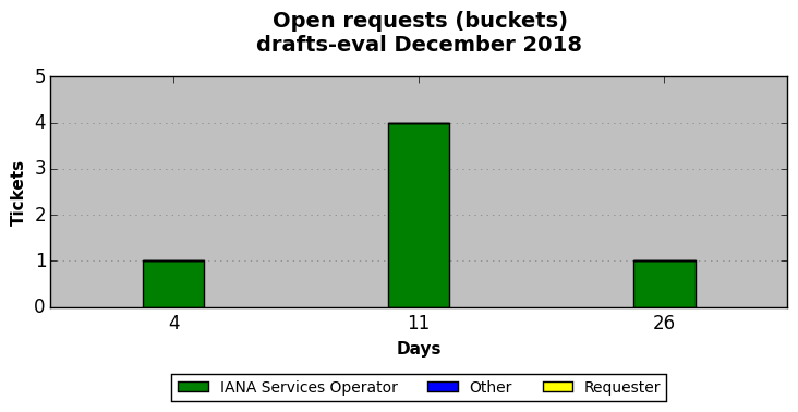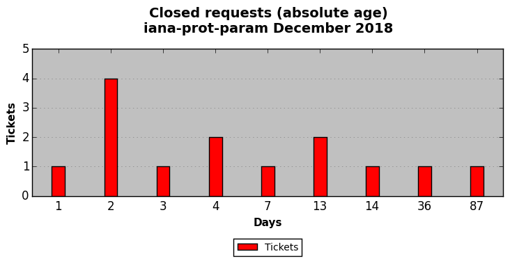 December 2018Due to the nature of resource request reviews, ICANN/IANA and the IETF community are jointly responsible for cooperatively managing the resource request process. ICANN/IANA has control over the functions it performs directly, e.g., receiving requests, making sure they are syntactically and semantically sensible, forwarding the requests to Designated Experts where appropriate, creating and modifying the registries, etc. The IETF community has direct or indirect control over functions performed by third parties, including IESG Designated Experts, the IESG, the IAB, the RFC Editor, and the requester. As such, the processing of requests has a “gross processing time” calendar days goal established for each function and a “net processing time” calendar days goal to reflect time expended directly by ICANN/IANA.