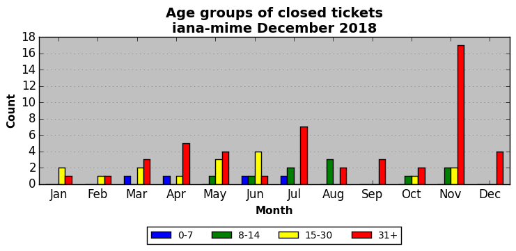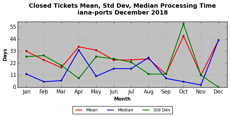 The statistics below are offered to measure IANA's fulfillment of the goals established in the ICANN / IANA - IETF MoU Supplemental Agreement. Further details on these goals and statistics can be found by reviewing the agreement.