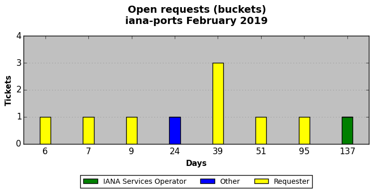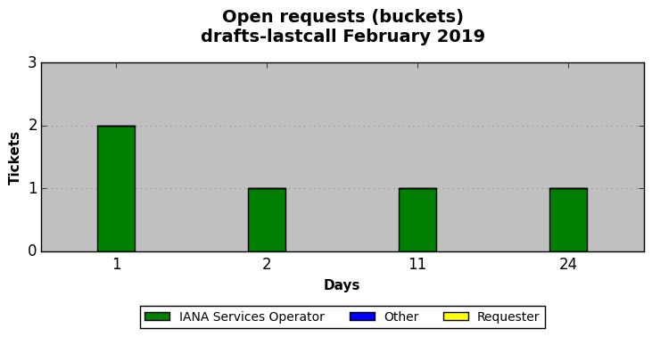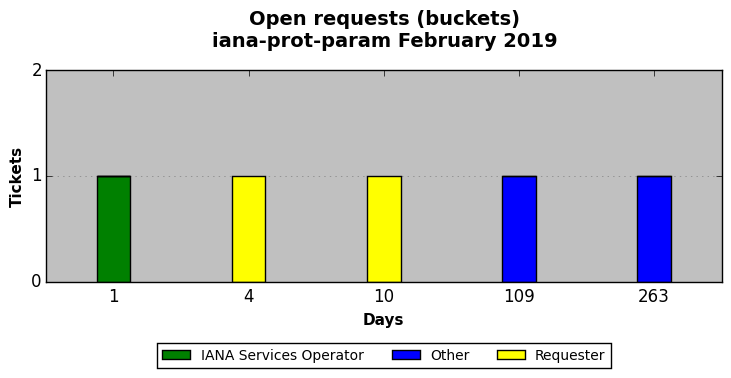 February 2019Due to the nature of resource request reviews, ICANN/IANA and the IETF community are jointly responsible for cooperatively managing the resource request process. ICANN/IANA has control over the functions it performs directly, e.g., receiving requests, making sure they are syntactically and semantically sensible, forwarding the requests to Designated Experts where appropriate, creating and modifying the registries, etc. The IETF community has direct or indirect control over functions performed by third parties, including IESG Designated Experts, the IESG, the IAB, the RFC Editor, and the requester. As such, the processing of requests has a “gross processing time” calendar days goal established for each function and a “net processing time” calendar days goal to reflect time expended directly by ICANN/IANA.