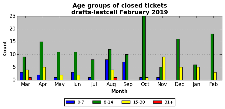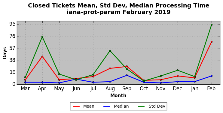 The statistics below are offered to measure IANA's fulfillment of the goals established in the ICANN / IANA - IETF MoU Supplemental Agreement. Further details on these goals and statistics can be found by reviewing the agreement.