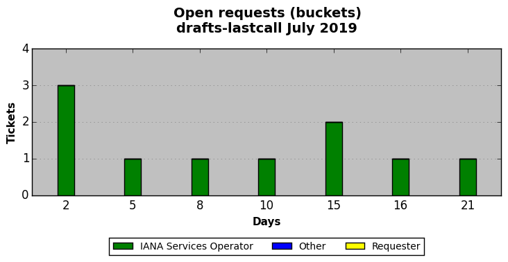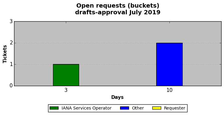 July 2019Due to the nature of resource request reviews, ICANN/IANA and the IETF community are jointly responsible for cooperatively managing the resource request process. ICANN/IANA has control over the functions it performs directly, e.g., receiving requests, making sure they are syntactically and semantically sensible, forwarding the requests to Designated Experts where appropriate, creating and modifying the registries, etc. The IETF community has direct or indirect control over functions performed by third parties, including IESG Designated Experts, the IESG, the IAB, the RFC Editor, and the requester. As such, the processing of requests has a “gross processing time” calendar days goal established for each function and a “net processing time” calendar days goal to reflect time expended directly by ICANN/IANA.