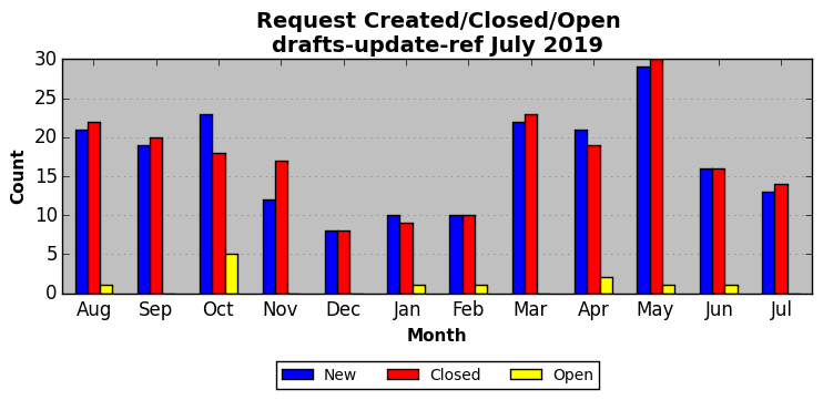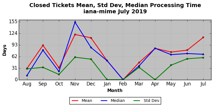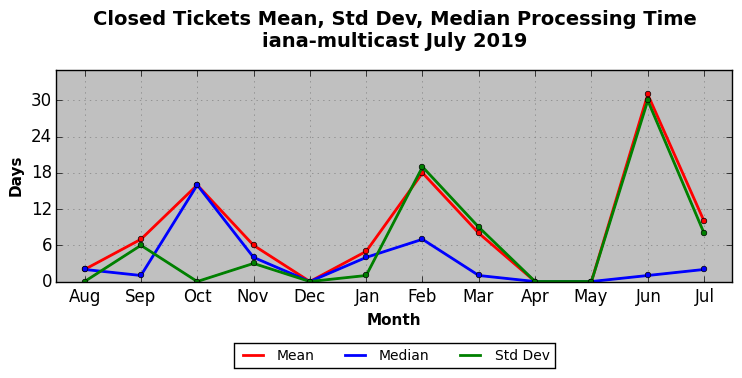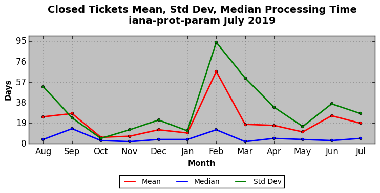 The statistics below are offered to measure IANA's fulfillment of the goals established in the ICANN / IANA - IETF MoU Supplemental Agreement. Further details on these goals and statistics can be found by reviewing the agreement.