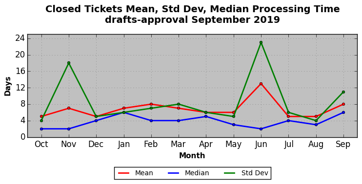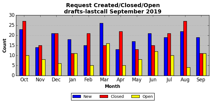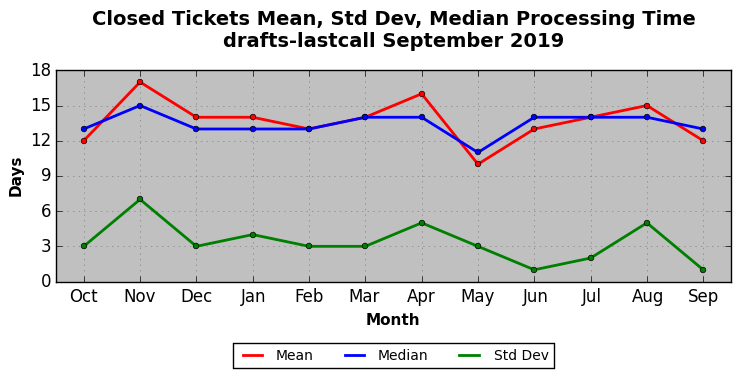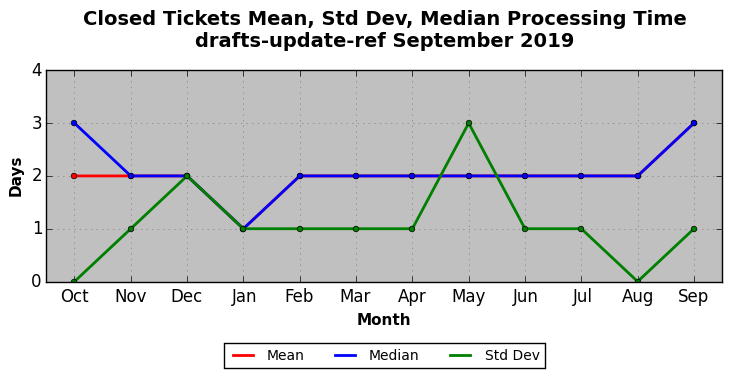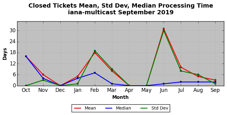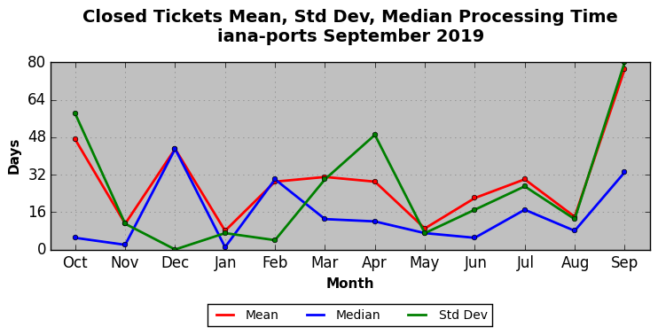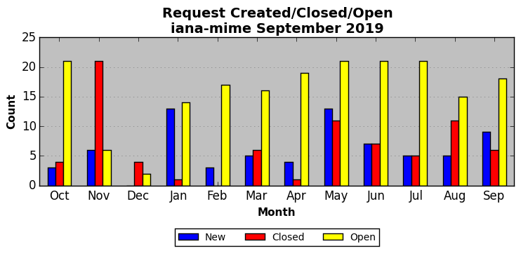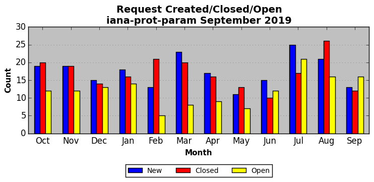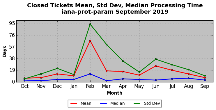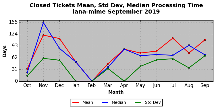 The statistics below are offered to measure IANA's fulfillment of the goals established in the ICANN / IANA - IETF MoU Supplemental Agreement. Further details on these goals and statistics can be found by reviewing the agreement.