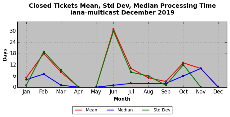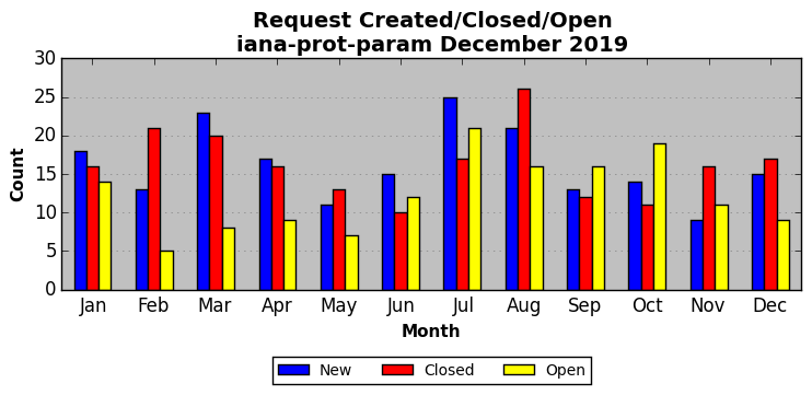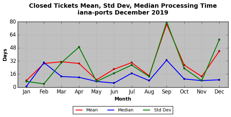 The statistics below are offered to measure IANA's fulfillment of the goals established in the ICANN / IANA - IETF MoU Supplemental Agreement. Further details on these goals and statistics can be found by reviewing the agreement.