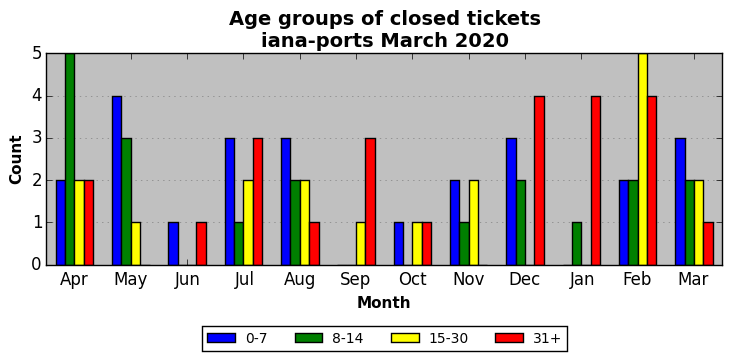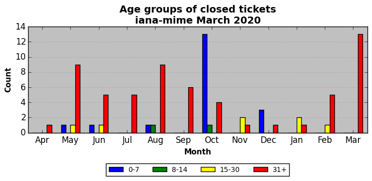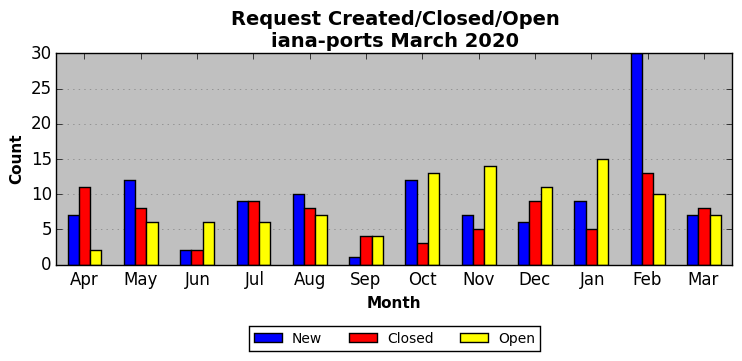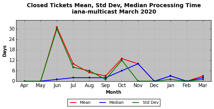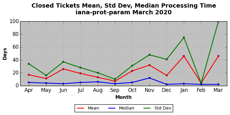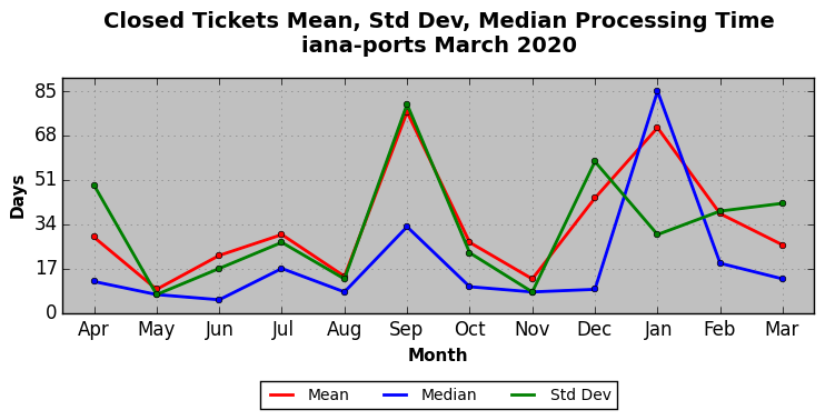 The statistics below are offered to measure IANA's fulfillment of the goals established in the ICANN / IANA - IETF MoU Supplemental Agreement. Further details on these goals and statistics can be found by reviewing the agreement.