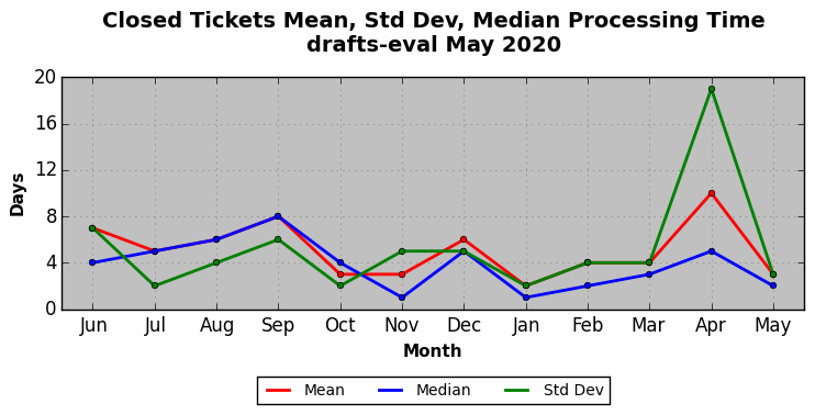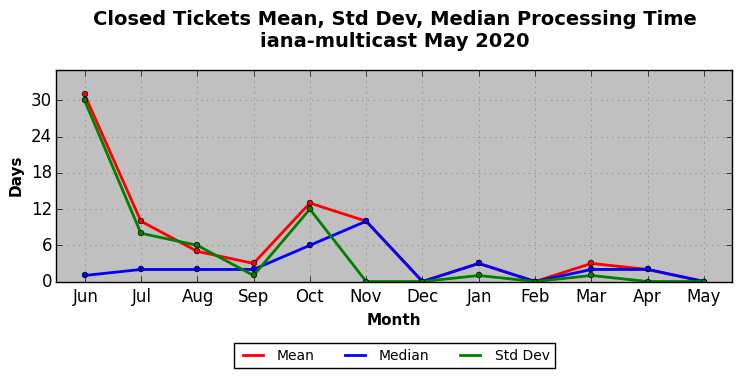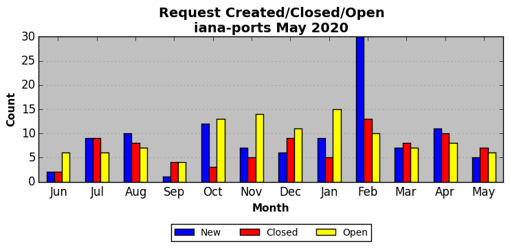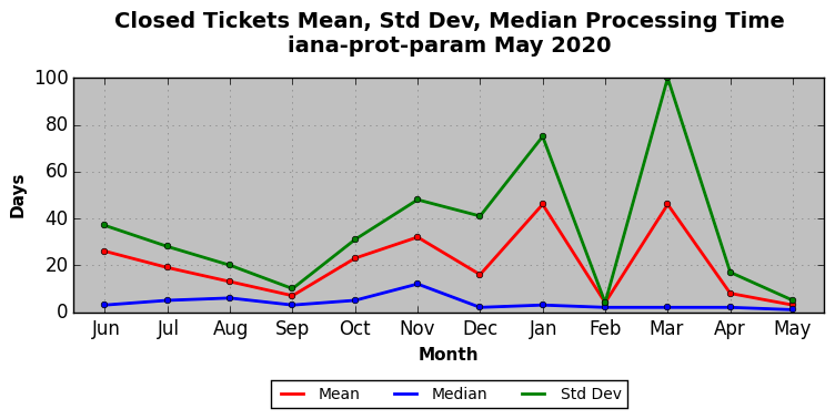 The statistics below are offered to measure IANA's fulfillment of the goals established in the ICANN / IANA - IETF MoU Supplemental Agreement. Further details on these goals and statistics can be found by reviewing the agreement.