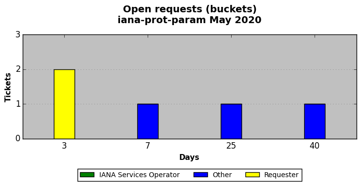 May 2020Due to the nature of resource request reviews, ICANN/IANA and the IETF community are jointly responsible for cooperatively managing the resource request process. ICANN/IANA has control over the functions it performs directly, e.g., receiving requests, making sure they are syntactically and semantically sensible, forwarding the requests to Designated Experts where appropriate, creating and modifying the registries, etc. The IETF community has direct or indirect control over functions performed by third parties, including IESG Designated Experts, the IESG, the IAB, the RFC Editor, and the requester. As such, the processing of requests has a “gross processing time” calendar days goal established for each function and a “net processing time” calendar days goal to reflect time expended directly by ICANN/IANA.