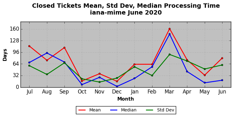 The statistics below are offered to measure IANA's fulfillment of the goals established in the ICANN / IANA - IETF MoU Supplemental Agreement. Further details on these goals and statistics can be found by reviewing the agreement.