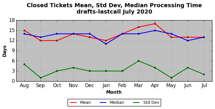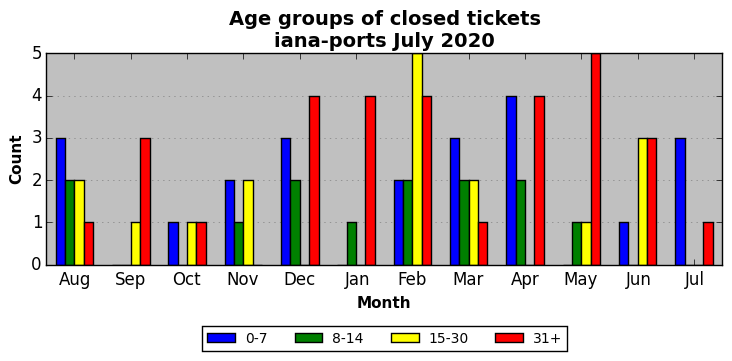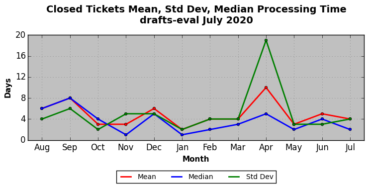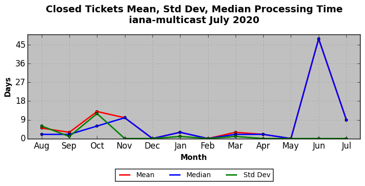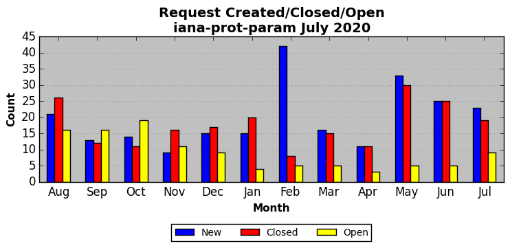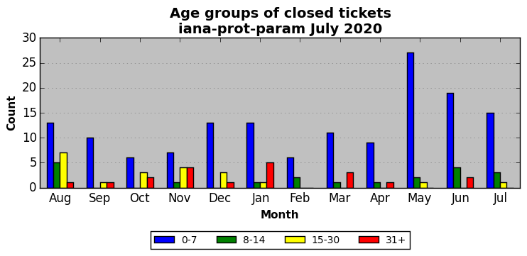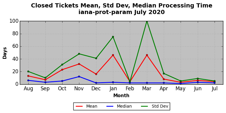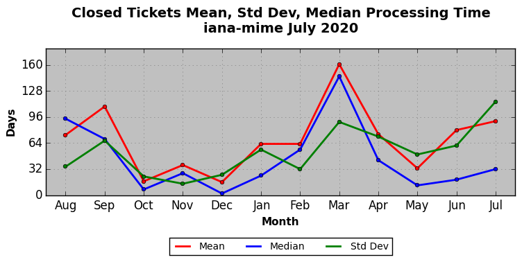 The statistics below are offered to measure IANA's fulfillment of the goals established in the ICANN / IANA - IETF MoU Supplemental Agreement. Further details on these goals and statistics can be found by reviewing the agreement.