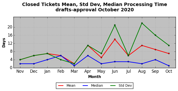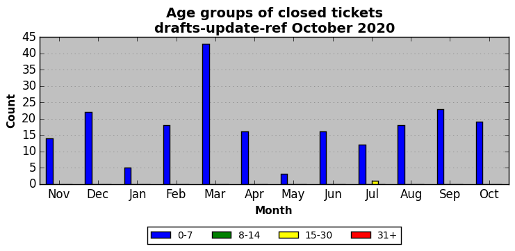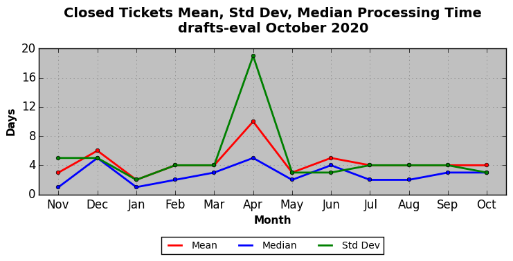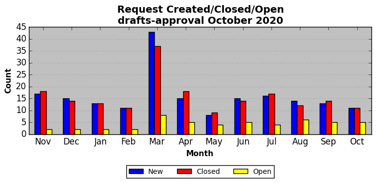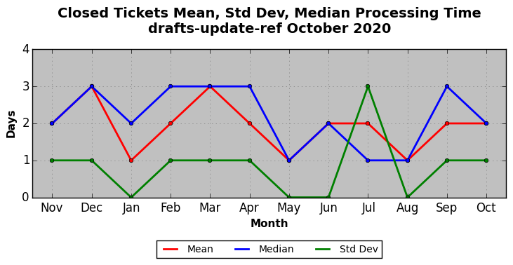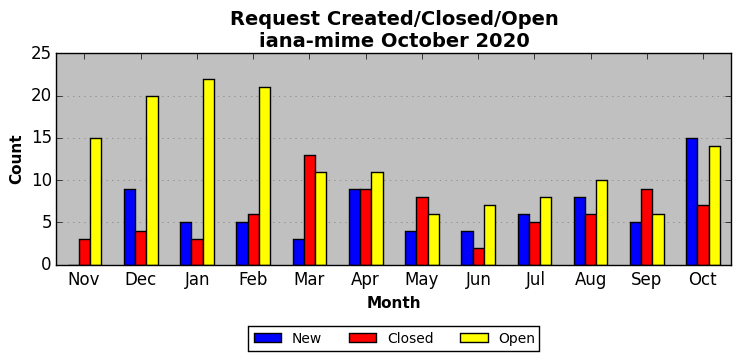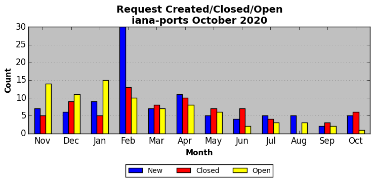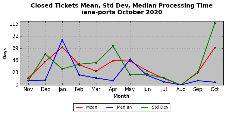 The statistics below are offered to measure IANA's fulfillment of the goals established in the ICANN / IANA - IETF MoU Supplemental Agreement. Further details on these goals and statistics can be found by reviewing the agreement.