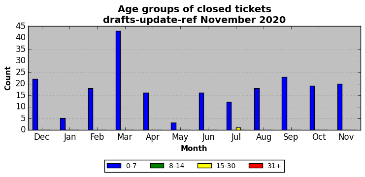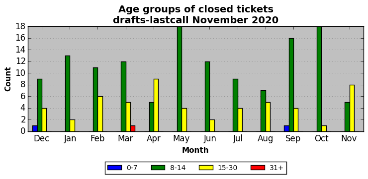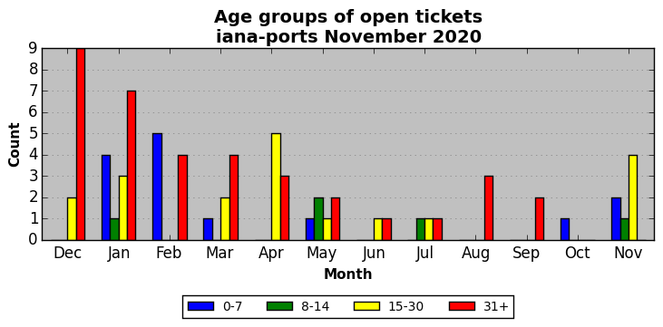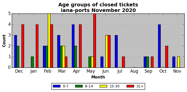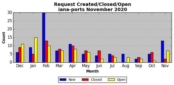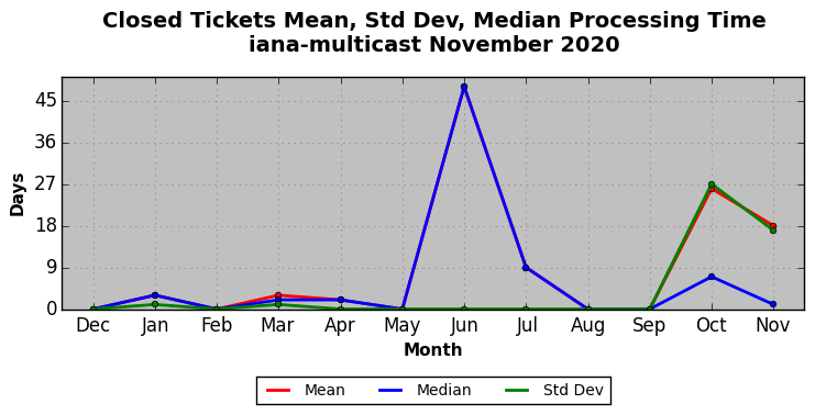 The statistics below are offered to measure IANA's fulfillment of the goals established in the ICANN / IANA - IETF MoU Supplemental Agreement. Further details on these goals and statistics can be found by reviewing the agreement.