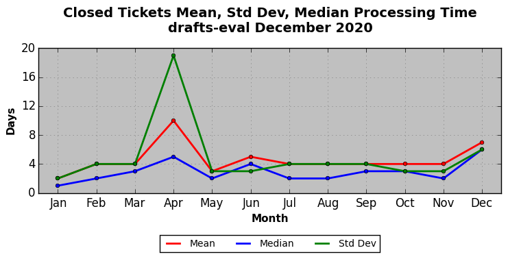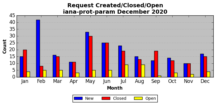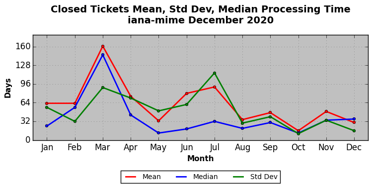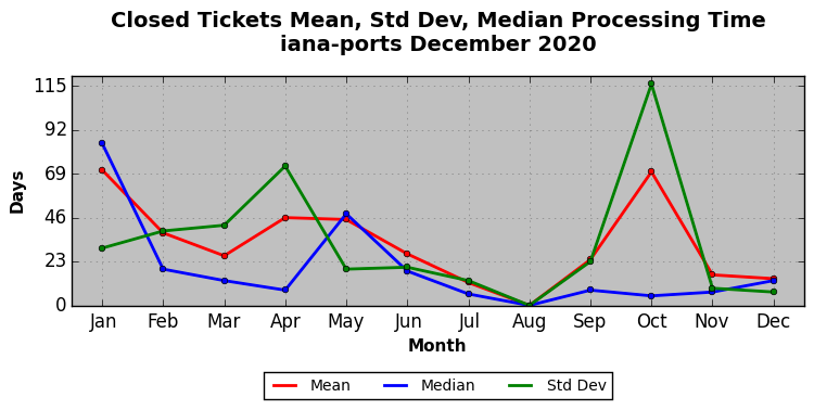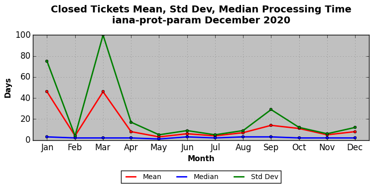 The statistics below are offered to measure IANA's fulfillment of the goals established in the ICANN / IANA - IETF MoU Supplemental Agreement. Further details on these goals and statistics can be found by reviewing the agreement.