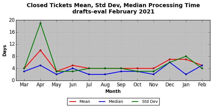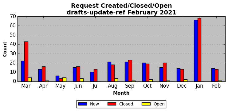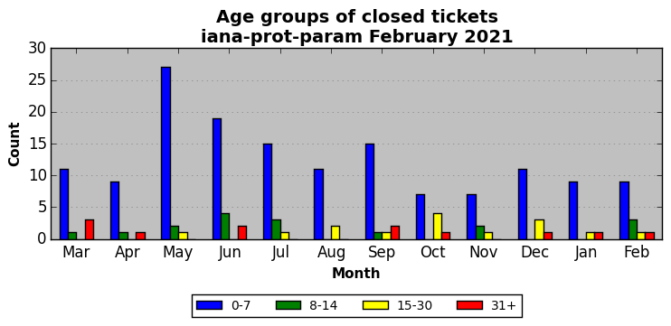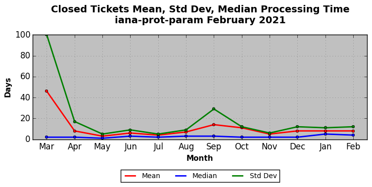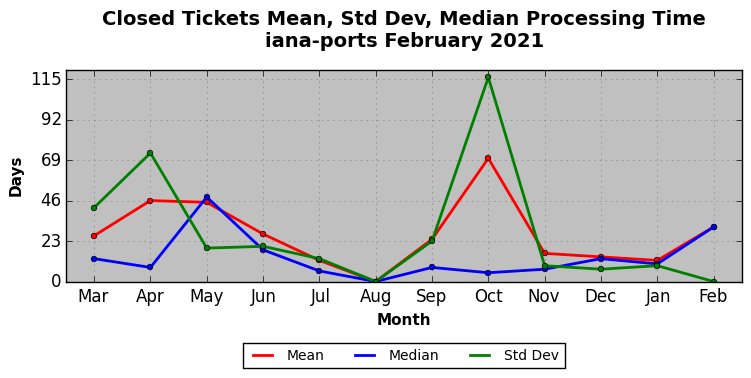 The statistics below are offered to measure IANA's fulfillment of the goals established in the ICANN / IANA - IETF MoU Supplemental Agreement. Further details on these goals and statistics can be found by reviewing the agreement.