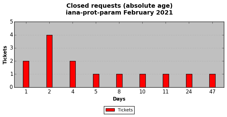 February 2021Due to the nature of resource request reviews, ICANN/IANA and the IETF community are jointly responsible for cooperatively managing the resource request process. ICANN/IANA has control over the functions it performs directly, e.g., receiving requests, making sure they are syntactically and semantically sensible, forwarding the requests to Designated Experts where appropriate, creating and modifying the registries, etc. The IETF community has direct or indirect control over functions performed by third parties, including IESG Designated Experts, the IESG, the IAB, the RFC Editor, and the requester. As such, the processing of requests has a “gross processing time” calendar days goal established for each function and a “net processing time” calendar days goal to reflect time expended directly by ICANN/IANA.