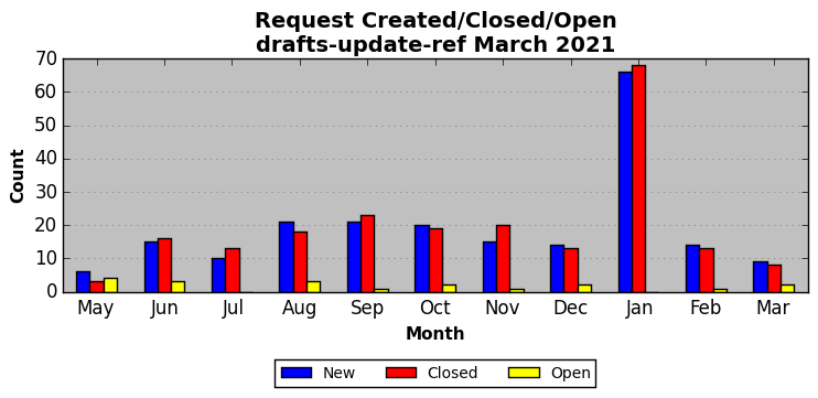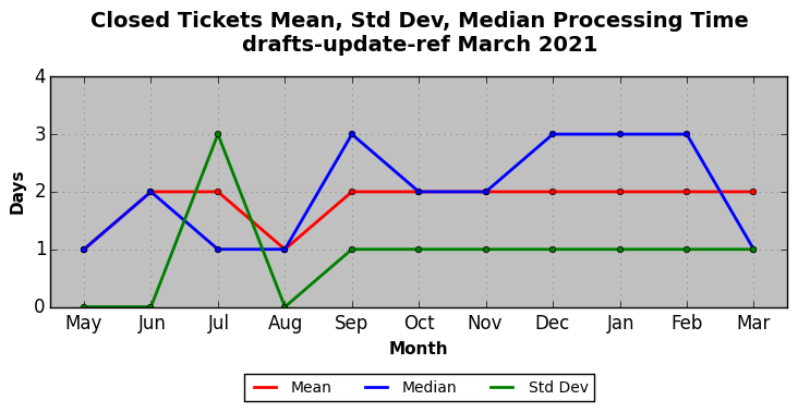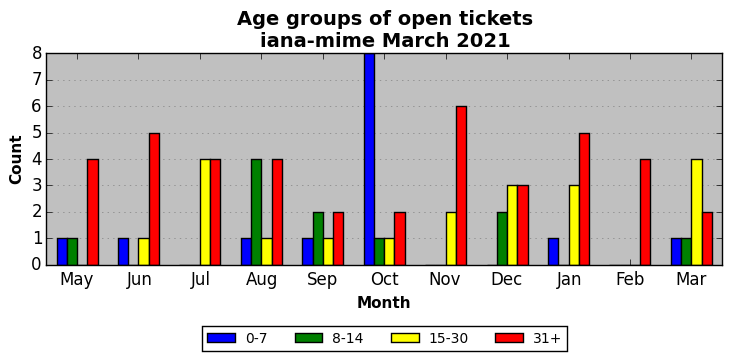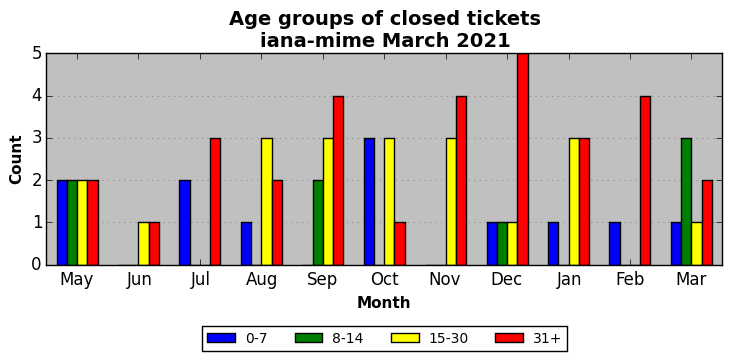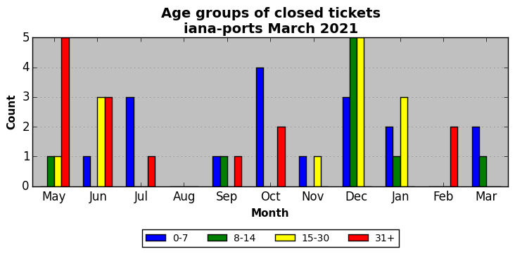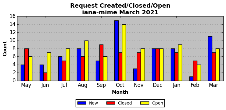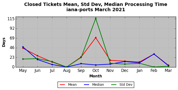 The statistics below are offered to measure IANA's fulfillment of the goals established in the ICANN / IANA - IETF MoU Supplemental Agreement. Further details on these goals and statistics can be found by reviewing the agreement.