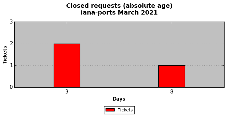 March 2021Due to the nature of resource request reviews, ICANN/IANA and the IETF community are jointly responsible for cooperatively managing the resource request process. ICANN/IANA has control over the functions it performs directly, e.g., receiving requests, making sure they are syntactically and semantically sensible, forwarding the requests to Designated Experts where appropriate, creating and modifying the registries, etc. The IETF community has direct or indirect control over functions performed by third parties, including IESG Designated Experts, the IESG, the IAB, the RFC Editor, and the requester. As such, the processing of requests has a “gross processing time” calendar days goal established for each function and a “net processing time” calendar days goal to reflect time expended directly by ICANN/IANA.