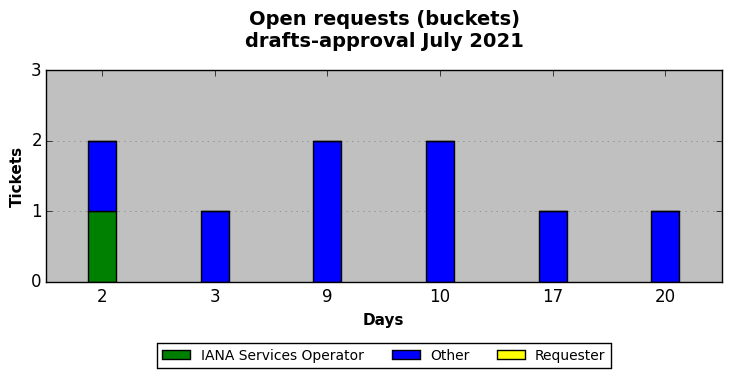 July 2021Due to the nature of resource request reviews, ICANN/IANA and the IETF community are jointly responsible for cooperatively managing the resource request process. ICANN/IANA has control over the functions it performs directly, e.g., receiving requests, making sure they are syntactically and semantically sensible, forwarding the requests to Designated Experts where appropriate, creating and modifying the registries, etc. The IETF community has direct or indirect control over functions performed by third parties, including IESG Designated Experts, the IESG, the IAB, the RFC Editor, and the requester. As such, the processing of requests has a “gross processing time” calendar days goal established for each function and a “net processing time” calendar days goal to reflect time expended directly by ICANN/IANA.