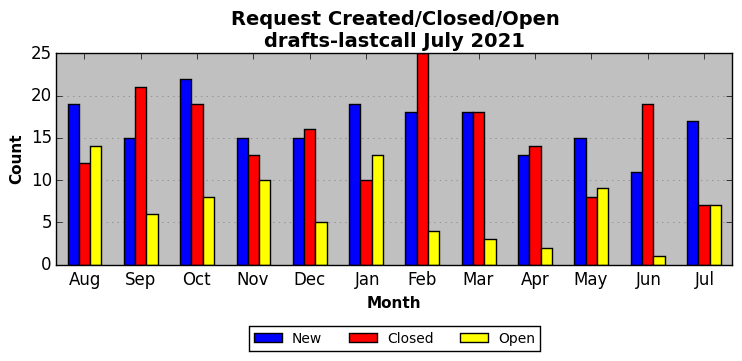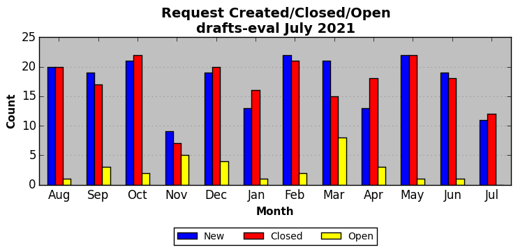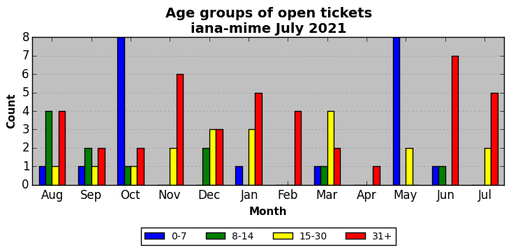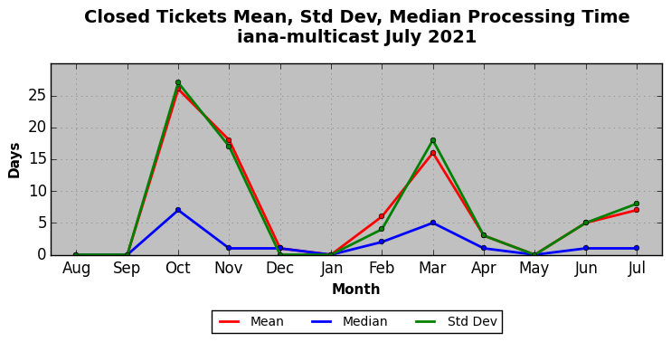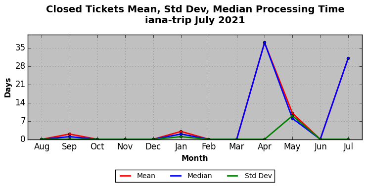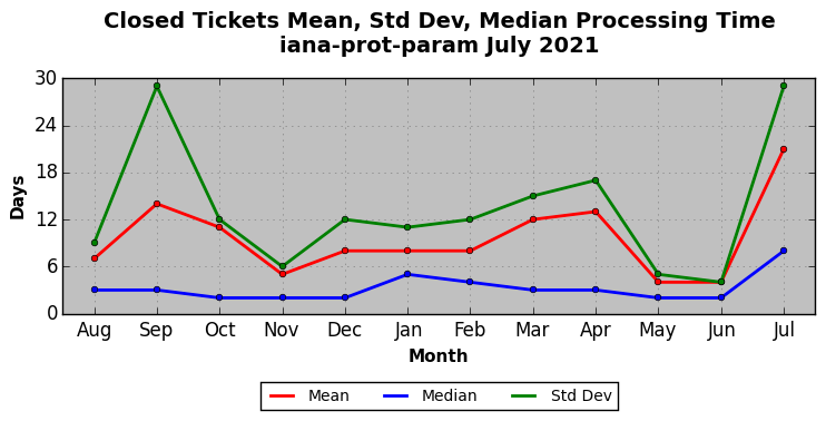The statistics below are offered to measure IANA's fulfillment of the goals established in the ICANN / IANA - IETF MoU Supplemental Agreement. Further details on these goals and statistics can be found by reviewing the agreement.