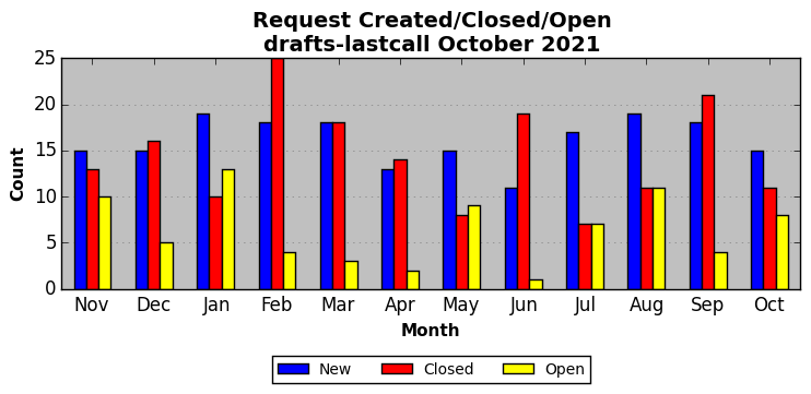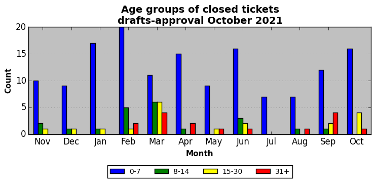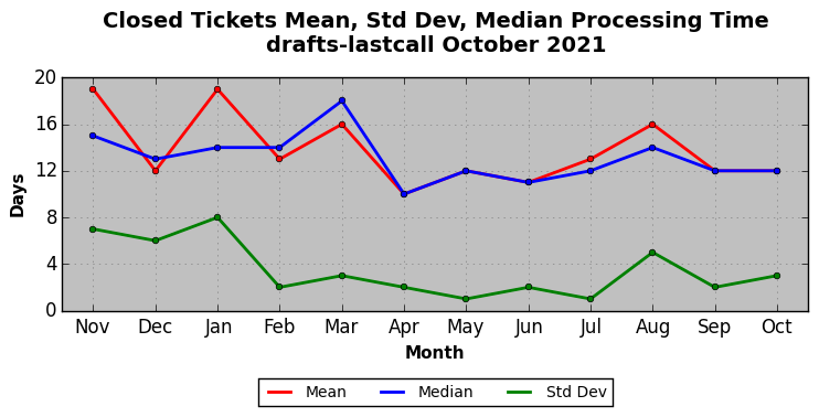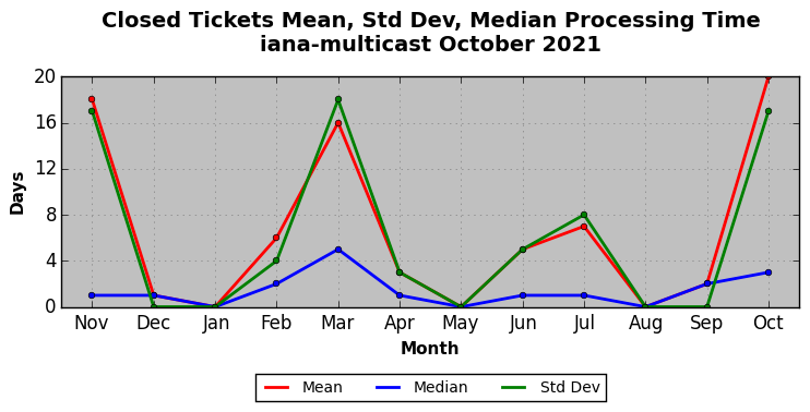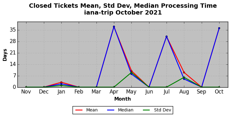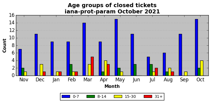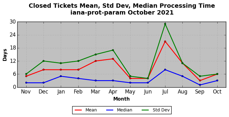 The statistics below are offered to measure IANA's fulfillment of the goals established in the ICANN / IANA - IETF MoU Supplemental Agreement. Further details on these goals and statistics can be found by reviewing the agreement.