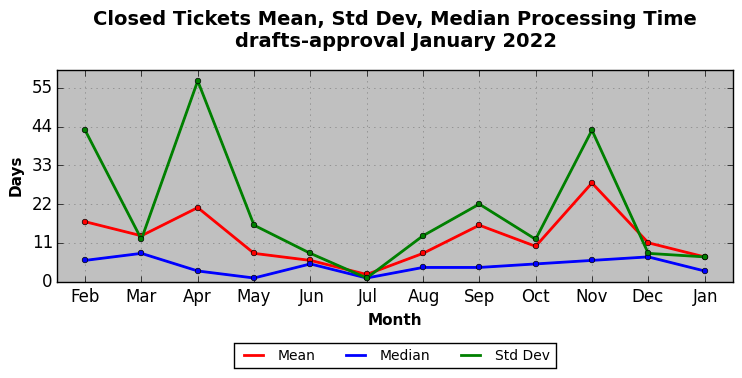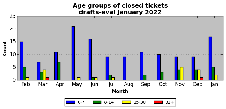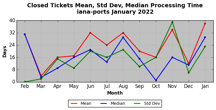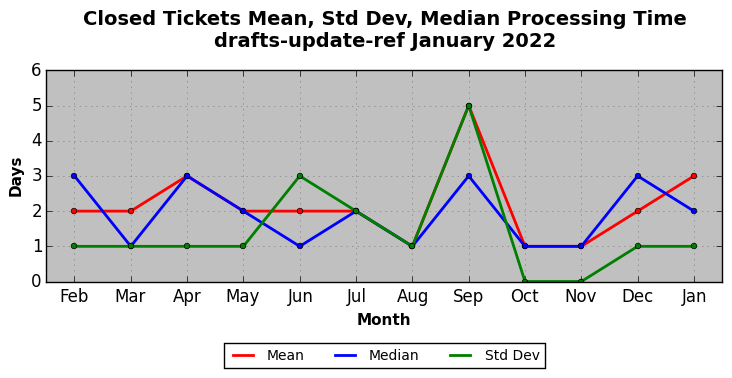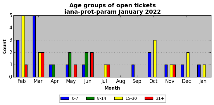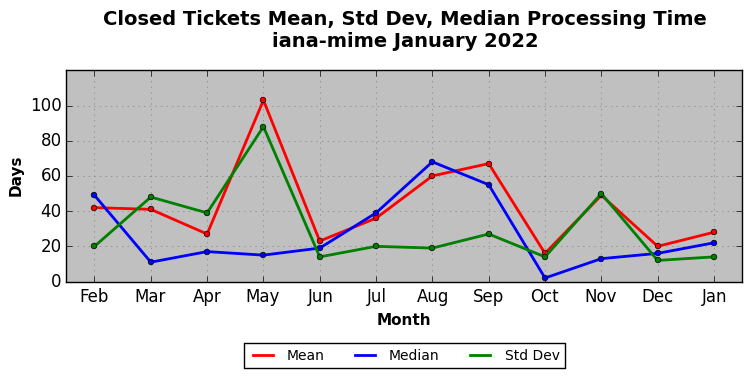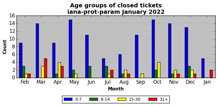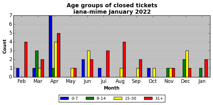 The statistics below are offered to measure IANA's fulfillment of the goals established in the ICANN / IANA - IETF MoU Supplemental Agreement. Further details on these goals and statistics can be found by reviewing the agreement.