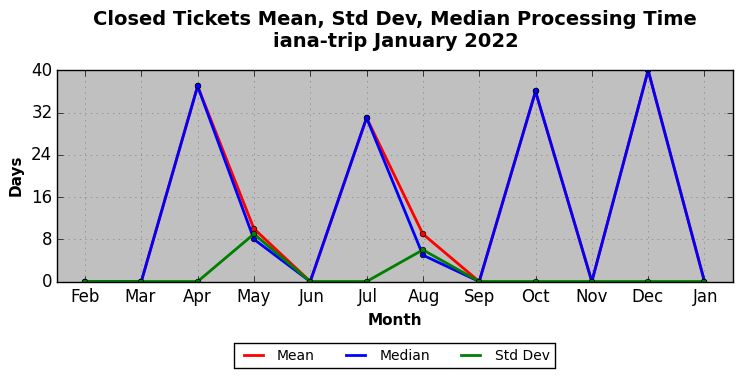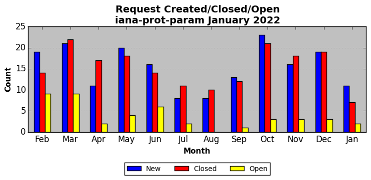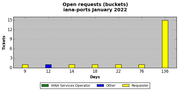 January 2022Due to the nature of resource request reviews, ICANN/IANA and the IETF community are jointly responsible for cooperatively managing the resource request process. ICANN/IANA has control over the functions it performs directly, e.g., receiving requests, making sure they are syntactically and semantically sensible, forwarding the requests to Designated Experts where appropriate, creating and modifying the registries, etc. The IETF community has direct or indirect control over functions performed by third parties, including IESG Designated Experts, the IESG, the IAB, the RFC Editor, and the requester. As such, the processing of requests has a “gross processing time” calendar days goal established for each function and a “net processing time” calendar days goal to reflect time expended directly by ICANN/IANA.