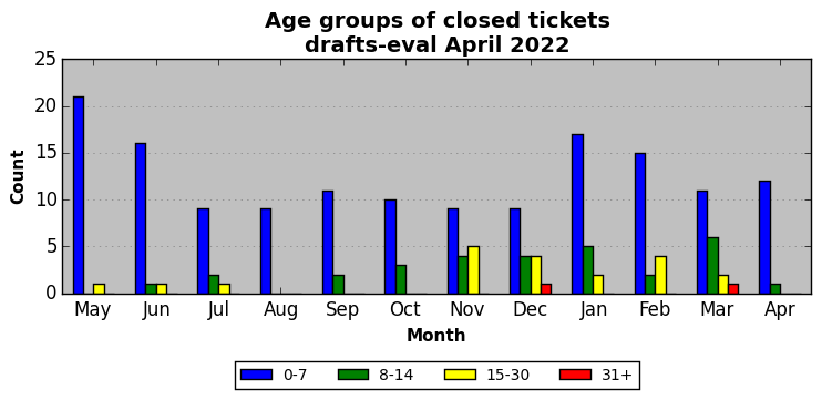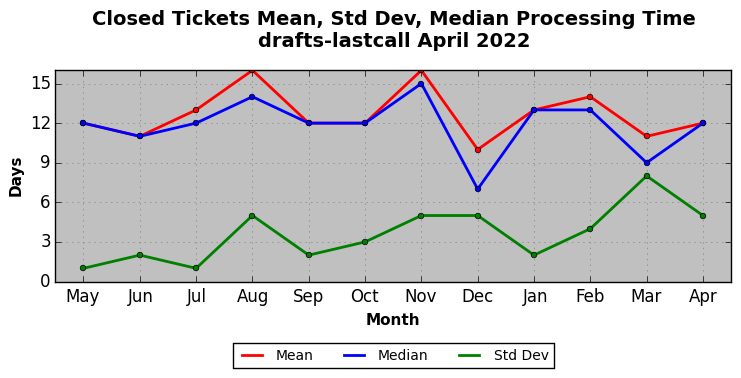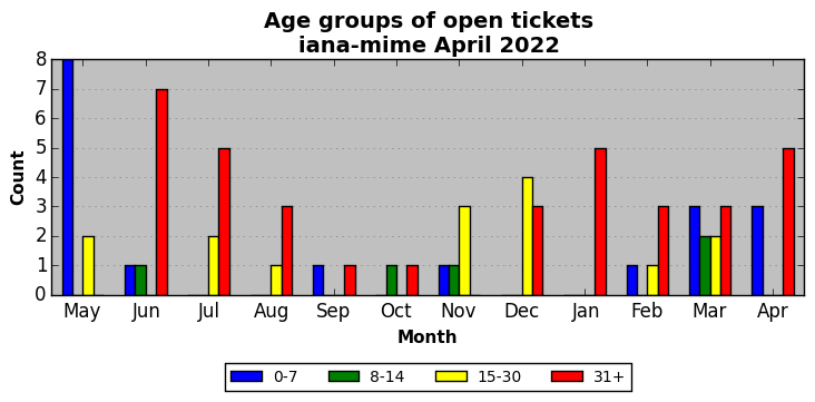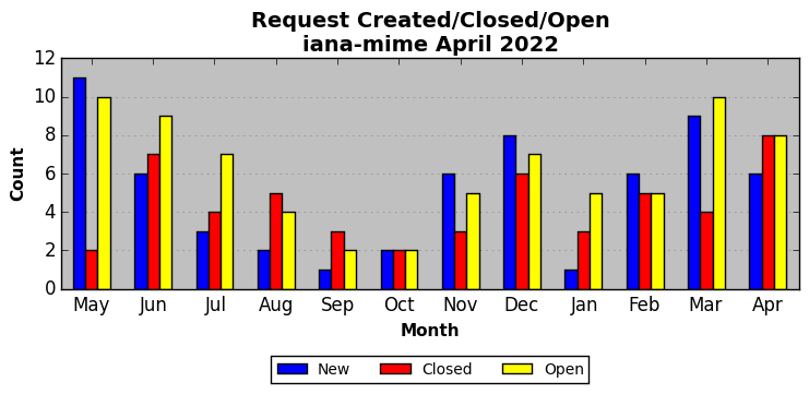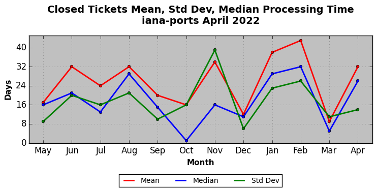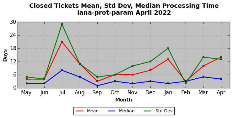 The statistics below are offered to measure IANA's fulfillment of the goals established in the ICANN / IANA - IETF MoU Supplemental Agreement. Further details on these goals and statistics can be found by reviewing the agreement.