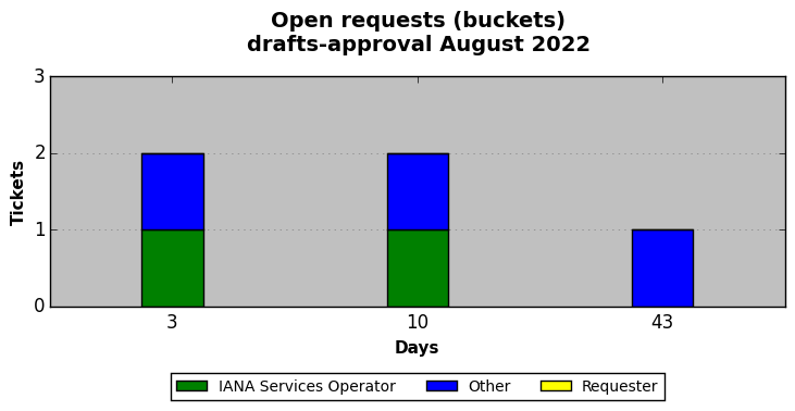 August 2022Due to the nature of resource request reviews, ICANN/IANA and the IETF community are jointly responsible for cooperatively managing the resource request process. ICANN/IANA has control over the functions it performs directly, e.g., receiving requests, making sure they are syntactically and semantically sensible, forwarding the requests to Designated Experts where appropriate, creating and modifying the registries, etc. The IETF community has direct or indirect control over functions performed by third parties, including IESG Designated Experts, the IESG, the IAB, the RFC Editor, and the requester. As such, the processing of requests has a “gross processing time” calendar days goal established for each function and a “net processing time” calendar days goal to reflect time expended directly by ICANN/IANA.