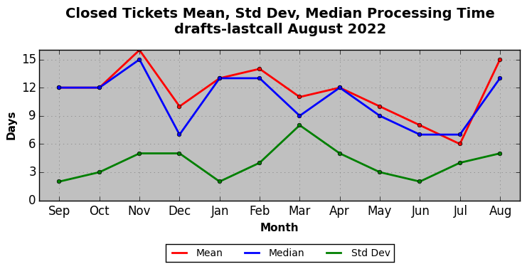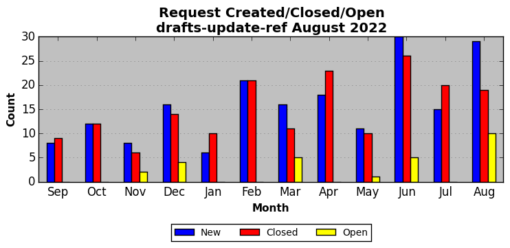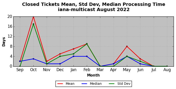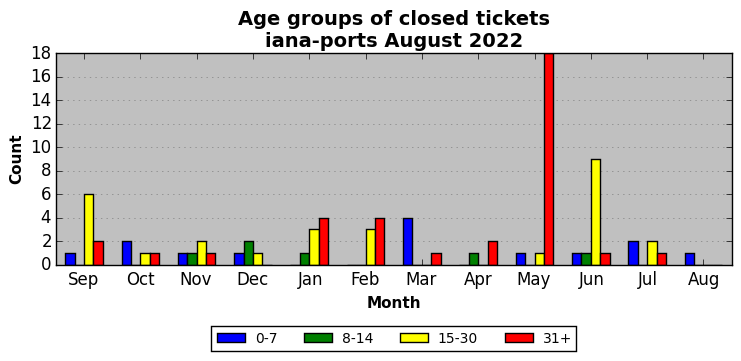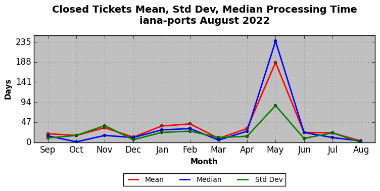 The statistics below are offered to measure IANA's fulfillment of the goals established in the ICANN / IANA - IETF MoU Supplemental Agreement. Further details on these goals and statistics can be found by reviewing the agreement.