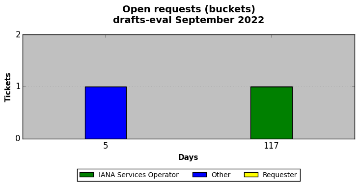 September 2022Due to the nature of resource request reviews, ICANN/IANA and the IETF community are jointly responsible for cooperatively managing the resource request process. ICANN/IANA has control over the functions it performs directly, e.g., receiving requests, making sure they are syntactically and semantically sensible, forwarding the requests to Designated Experts where appropriate, creating and modifying the registries, etc. The IETF community has direct or indirect control over functions performed by third parties, including IESG Designated Experts, the IESG, the IAB, the RFC Editor, and the requester. As such, the processing of requests has a “gross processing time” calendar days goal established for each function and a “net processing time” calendar days goal to reflect time expended directly by ICANN/IANA.