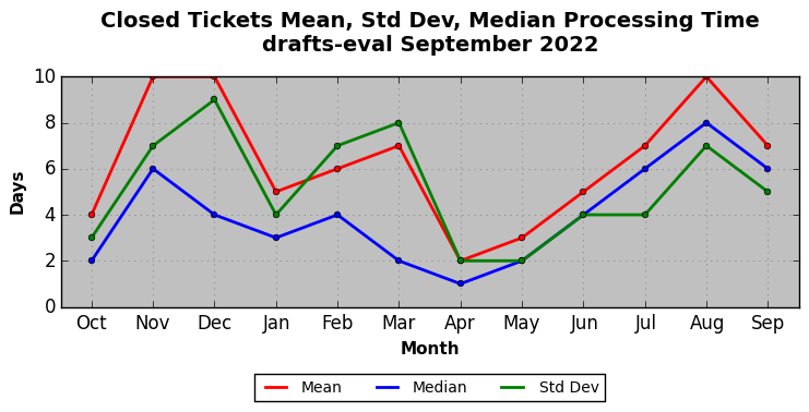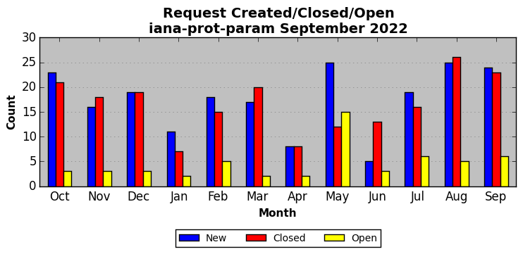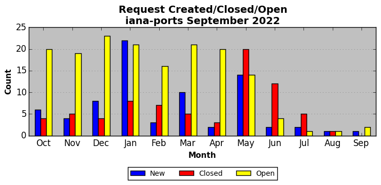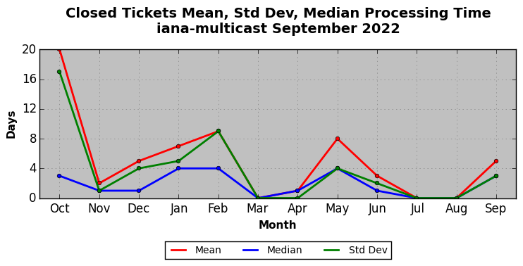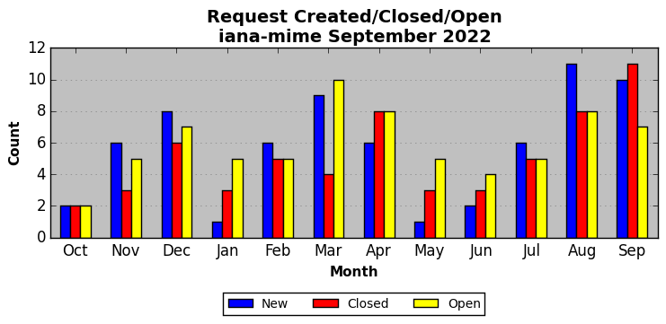The statistics below are offered to measure IANA's fulfillment of the goals established in the ICANN / IANA - IETF MoU Supplemental Agreement. Further details on these goals and statistics can be found by reviewing the agreement.