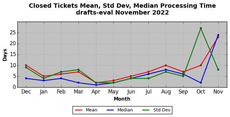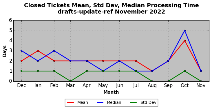 The statistics below are offered to measure IANA's fulfillment of the goals established in the ICANN / IANA - IETF MoU Supplemental Agreement. Further details on these goals and statistics can be found by reviewing the agreement.